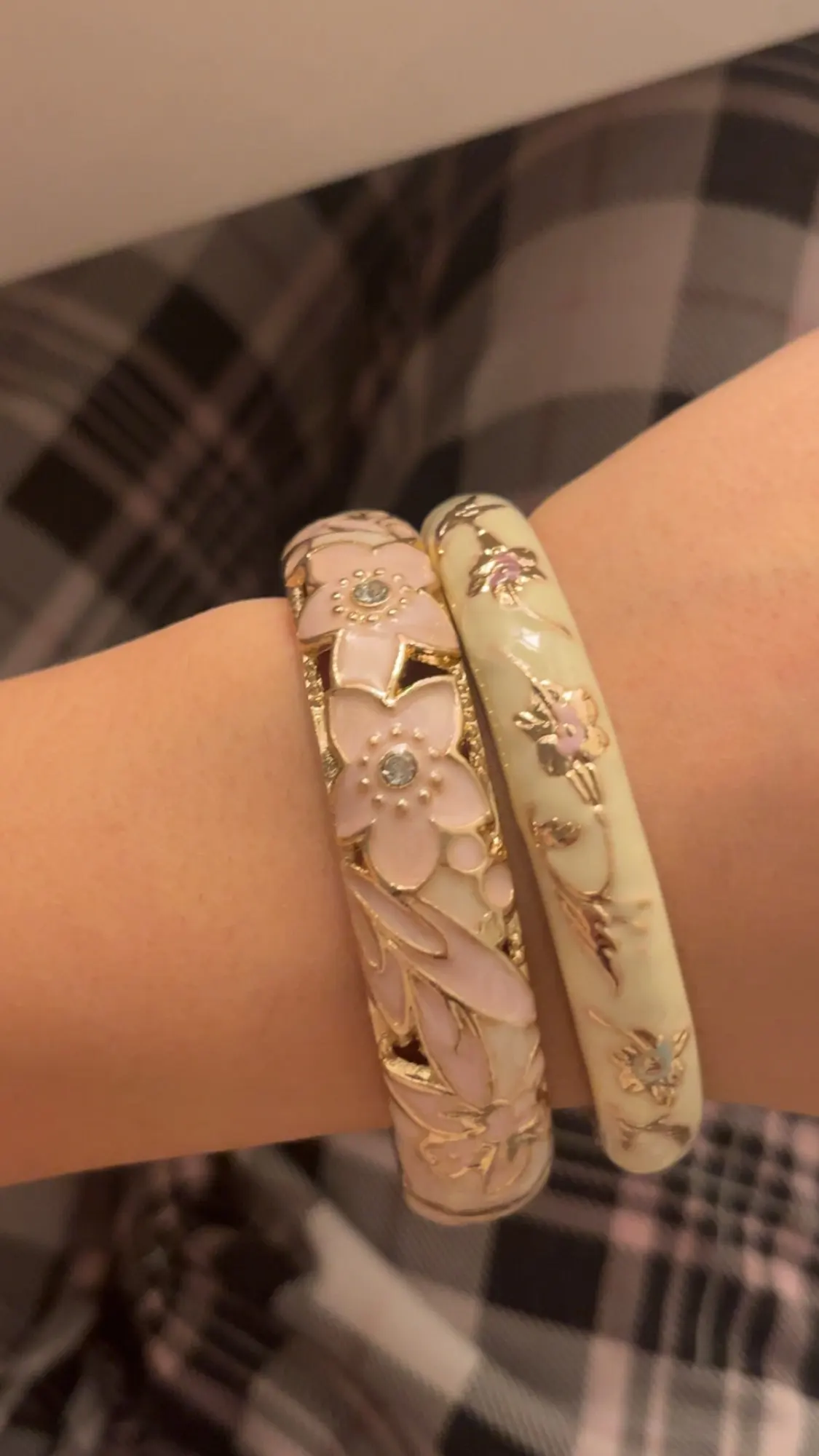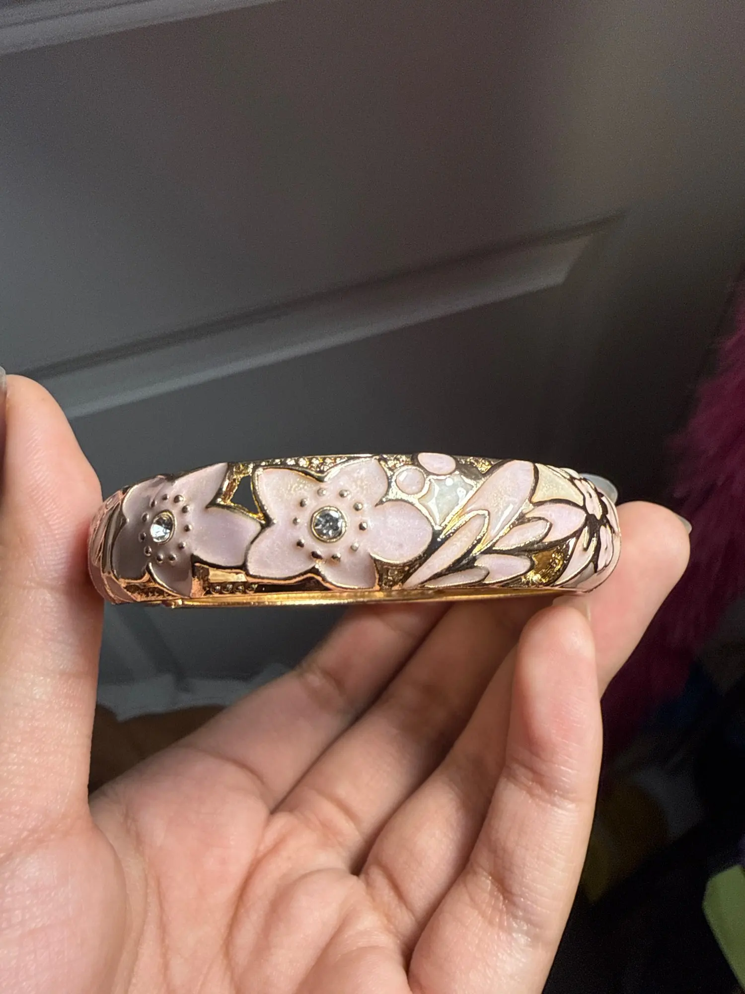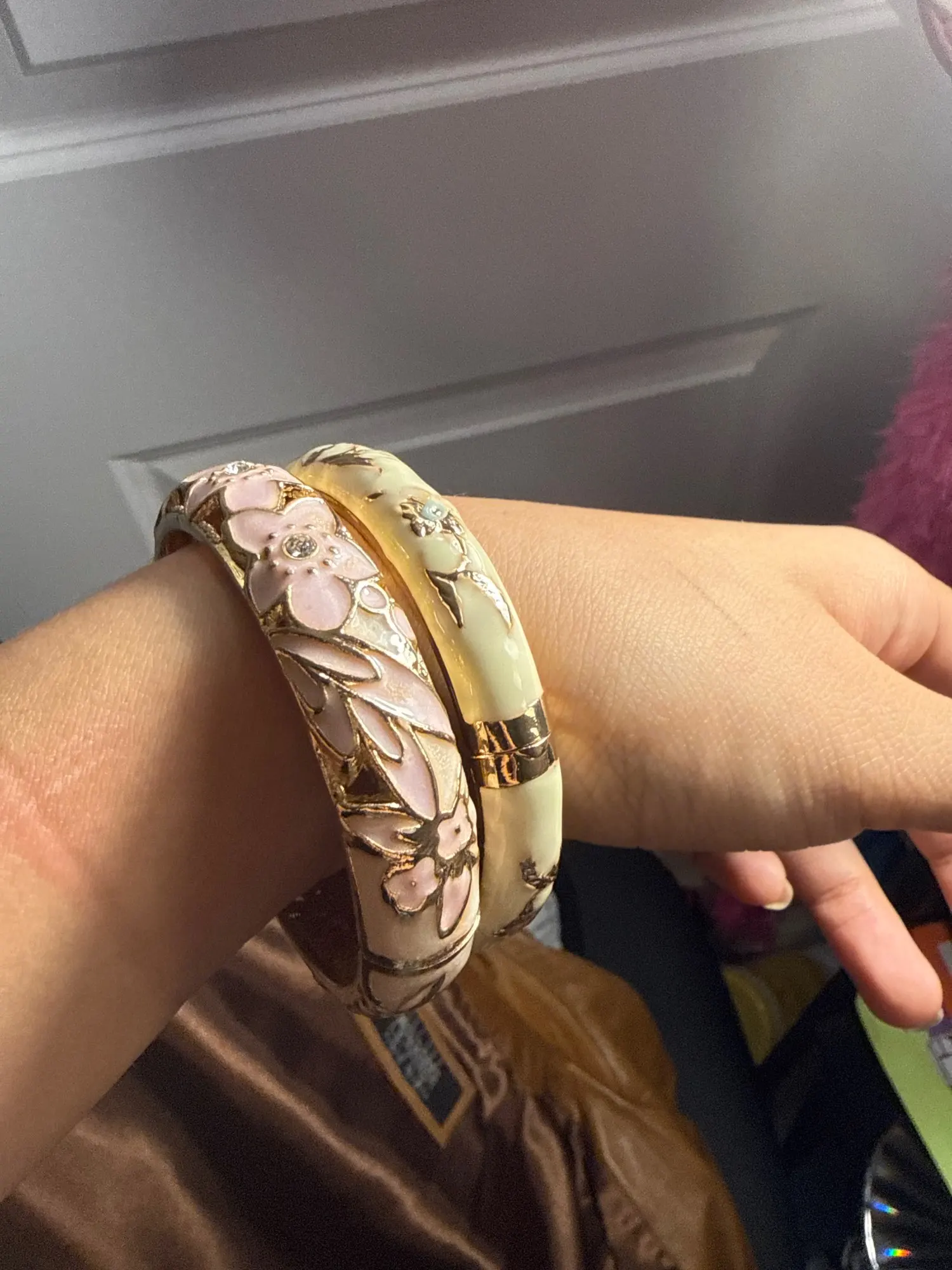 Nelia Osinski Very pretty! I love gold jewelry and the flowers make the design even better. You just clip it onto your wrist. Other than the fact that it’s a little big on my wrist, there’s no problems with this. And obviously since i just got it idk when it’ll tarnish so yeah!