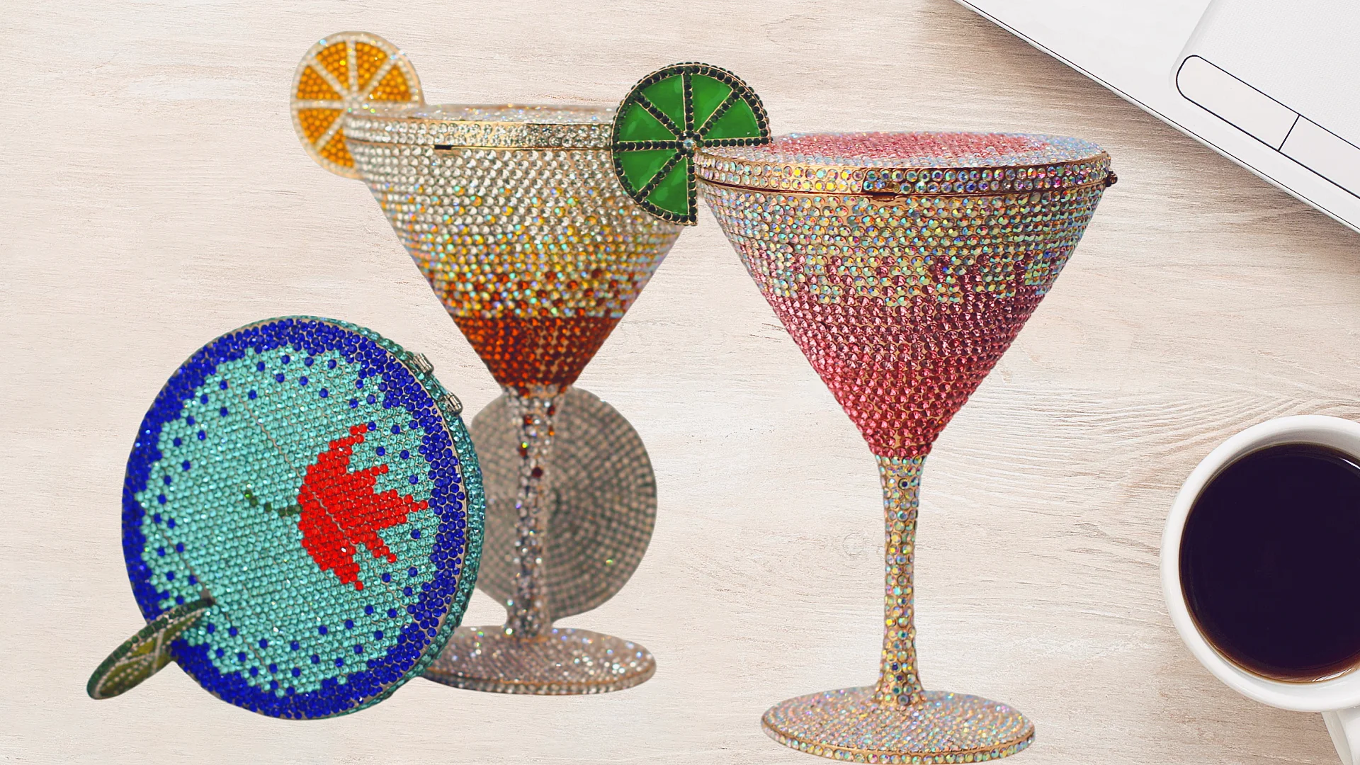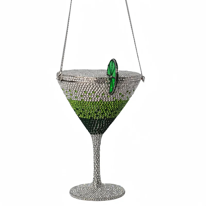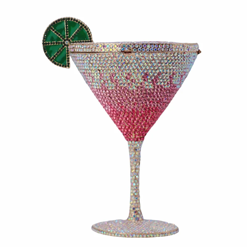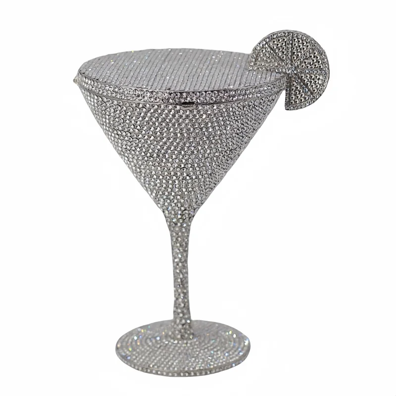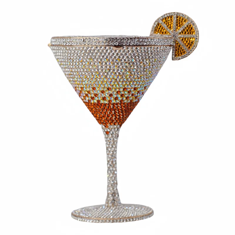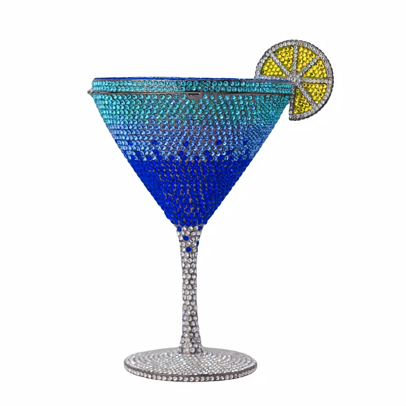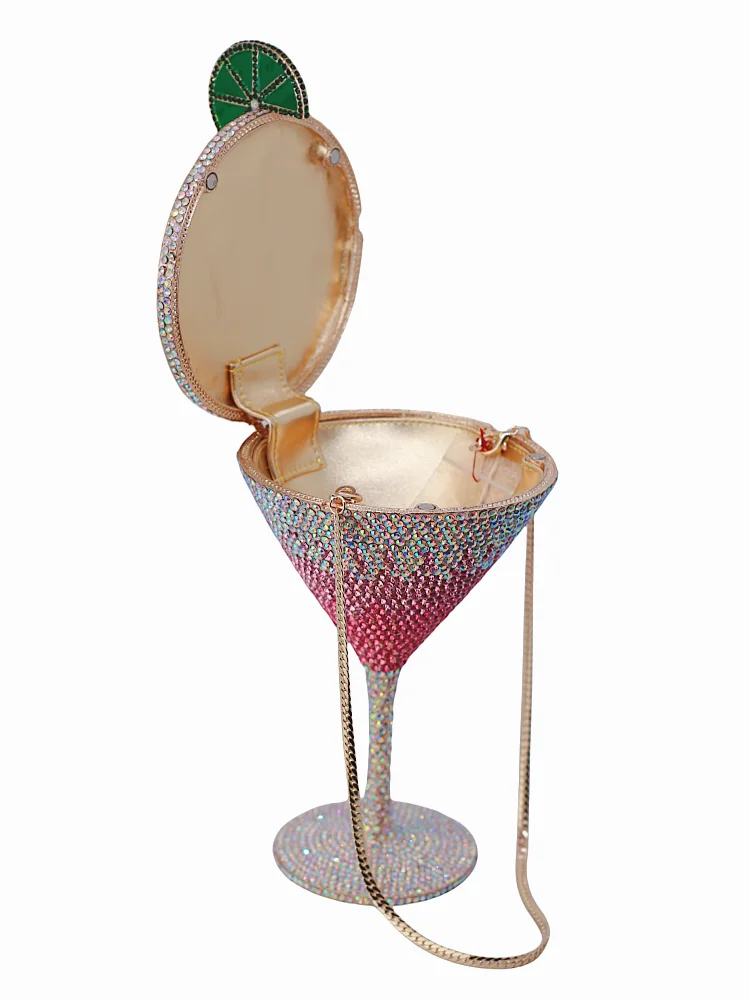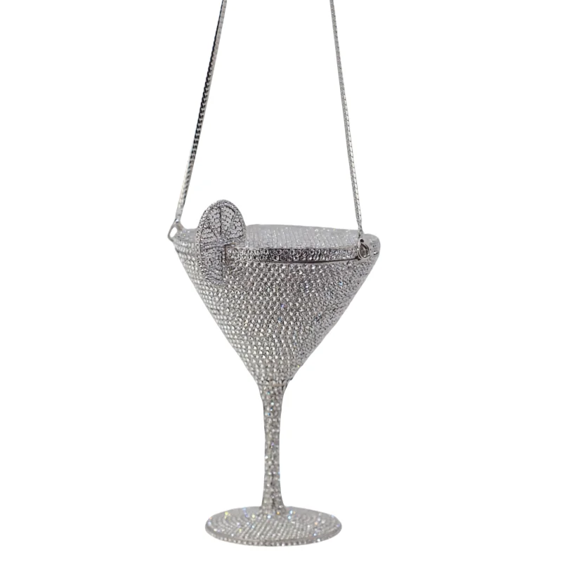 This crystal-encrusted martini glass clutch is the ultimate conversation starter — perfect for birthdays, brunches, nights out, vacations, and every glam moment in between. Hand-crafted with premium rhinestones, a secure top closure, and a spacious interior for your essentials (cards, keys, gloss).